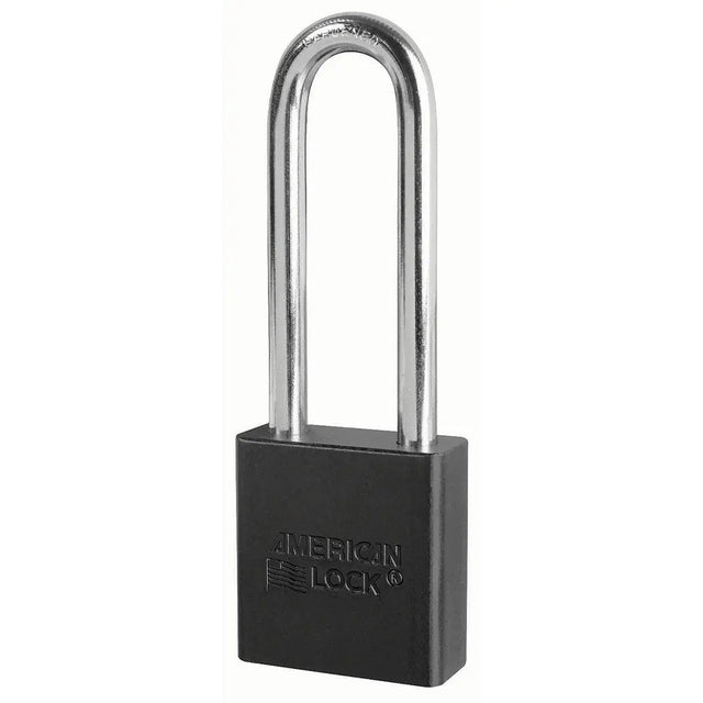 American Lock A1207BLK Black Anodized Aluminum Safety Padlock, 1-3/4" Body, 3" Tall 5/16" Diameter Shackle, Keyed Different