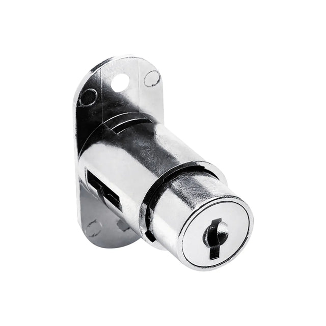 CompX Fort push lock for sliding , bypass wood cabinet doors, five disc tumbler in 7/8" diameter with 1-1/32" cylinder length, bright nickel finish and keyed alike to 217, 221, 224, 237, 238, and keyed different key codes.