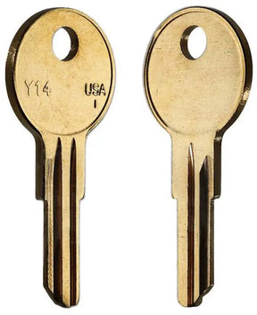 This Taylor line key blank by Kaba Ilco is a premium key blank matching the Taylor Y14-BR cross reference. Designed for accurate duplication and consistent fit in compatible lock systems, it is suitable for cabinet, residential, specialty, and general‑purpose key applications.