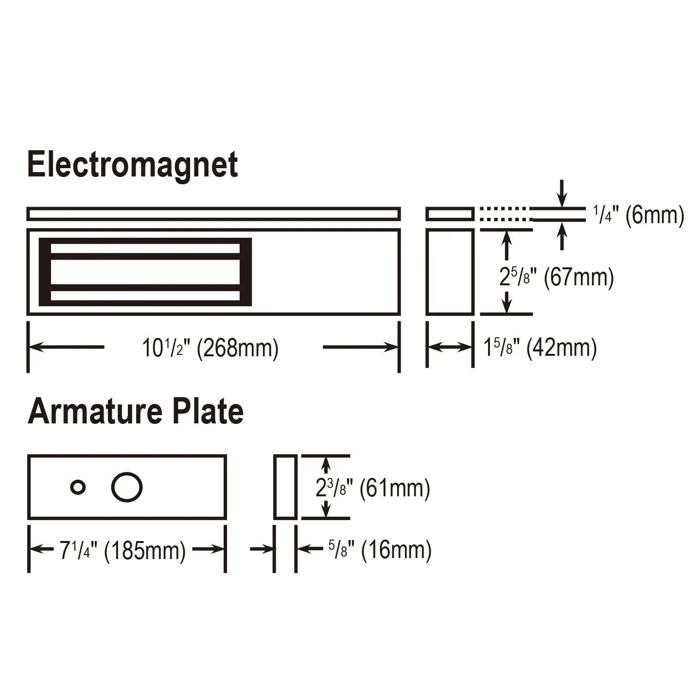 Dimensions (magnet): 10-1/2″ x 2-5/8″ x 1-9/16″ (267 × 67 × 40 mm)