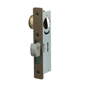 360° turn of key or thumbturn projects or retracts the counterbalanced bolt. Key can be removed only when bolt is in a positively locked or unlocked position. Lock accepts any standard 1" [25.4 mm] length, 1-5/32" [29.4 mm] diameter mortise cylinder with MS® cam such as the 4036 Mortise Cylinder or thumbturn such as the 4066Thumbturn, available separately. Lock accepts cylinder from either or both sides.
