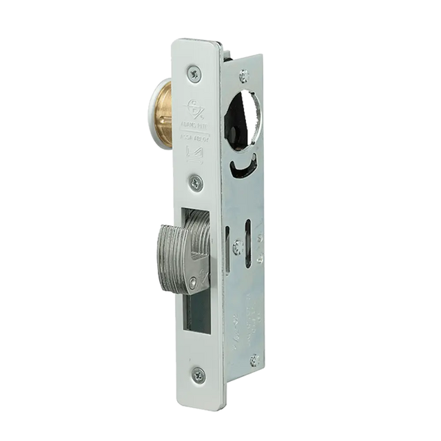 360° turn of key or thumbturn projects or retracts the counterbalanced bolt. Key can be removed only when bolt is in a positively locked or unlocked position. Lock accepts any standard 1" [25.4 mm] length, 1-5/32" [29.4 mm] diameter mortise cylinder with MS® cam such as the 4036 Mortise Cylinder or thumbturn such as the 4066Thumbturn, available separately. Lock accepts cylinder from either or both sides.