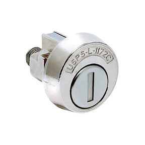 CompX National mailbox lock for USPS approved architectural mailboxes, on interior architectural mailboxes with USPS specification USPS-L-1172C, 90 degree CW rotation, key out in locked position only, keyed different, cam not included
