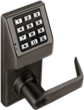 The Alarm Lock DL2700 is a heavy-duty BHMA Grade 1 security door lock with a UL 3-hour fire-rated cylindrical latch built for commercial and institutional durability. Its field-reversible full-size ADA-compliant lever makes it suitable for both wood and metal doors—or even gate installations when used with the optional mounting box.
