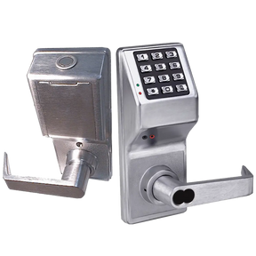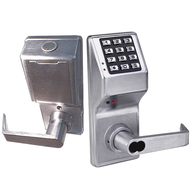 • Rugged all-metal 12-button weather-resistant keypad, field-reversible non-handed lever design, Grade 1 BHMA heavy-duty cylindrical lockset.