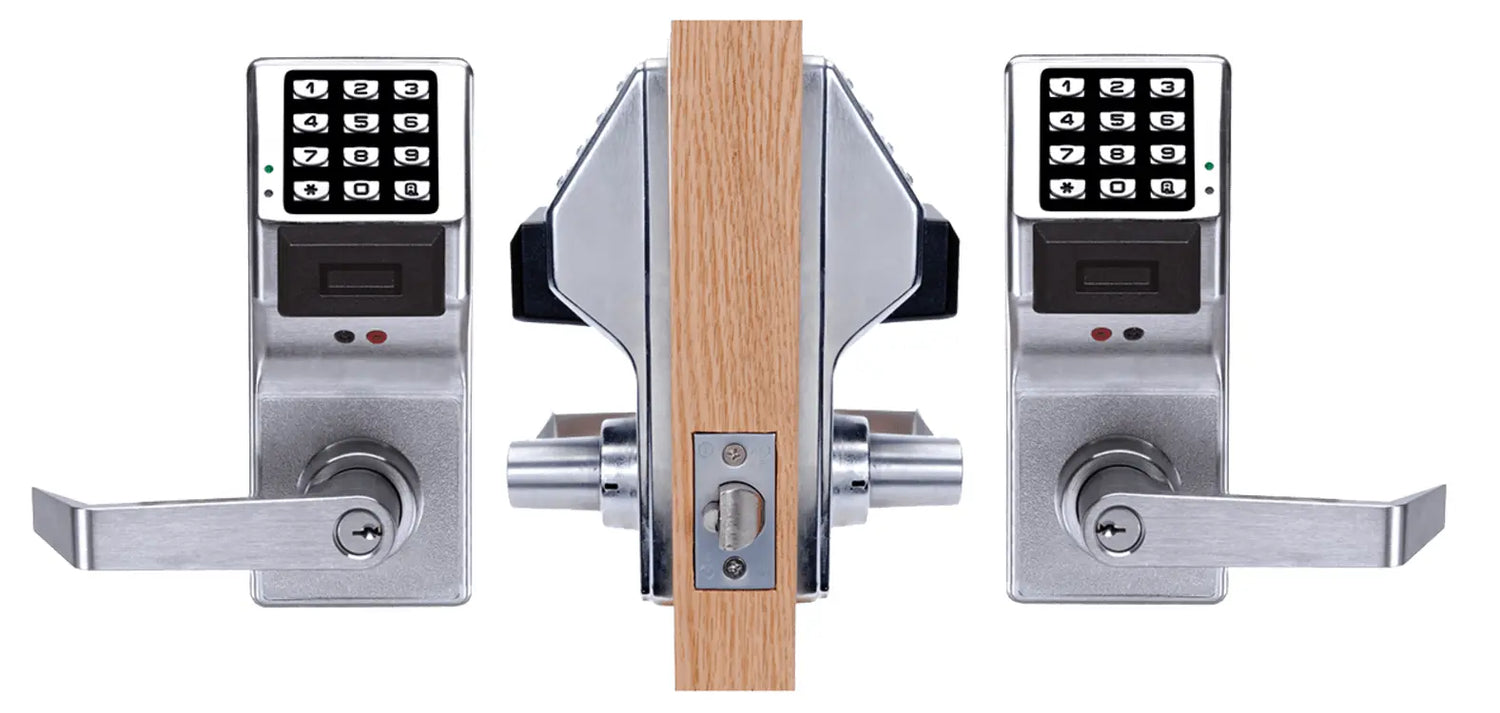 The Alarm Lock PDL5300/26D from the Trilogy® series is a robust dual-side access control lever lock designed for doors that require controlled access from both sides. Both sides are equipped with full keypads and HID proximity readers, enabling sign-in/sign-out capability or dual-entrance control.