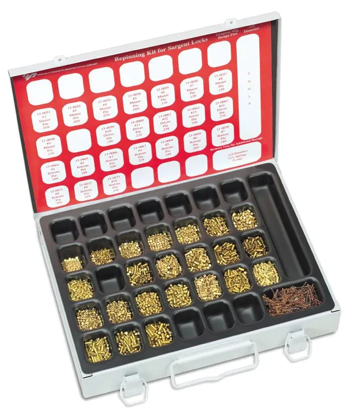 For locksmith professionals working with the Sargent key systems, this kit delivers the exact pin dimensions the manufacturer originally used—eliminating guesswork, speeding the re-key process, and consolidating inventory into a single trusted kit.