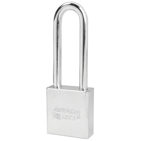 The American Lock No. A5202 Solid Steel Padlock features a 1-3/4in (44mm) wide hardened, chrome plated solid steel body to resist cutting, sawing and corrosion and a 3in (75mm) tall, 5/16in (8mm) diameter hardened boron alloy shackle for superior cut resistance. Easy to service with a 5-pin APTC12 rekeyable cylinder, this padlock is ideal for securing gates, sheds, truck/van doors and industrial machinery.