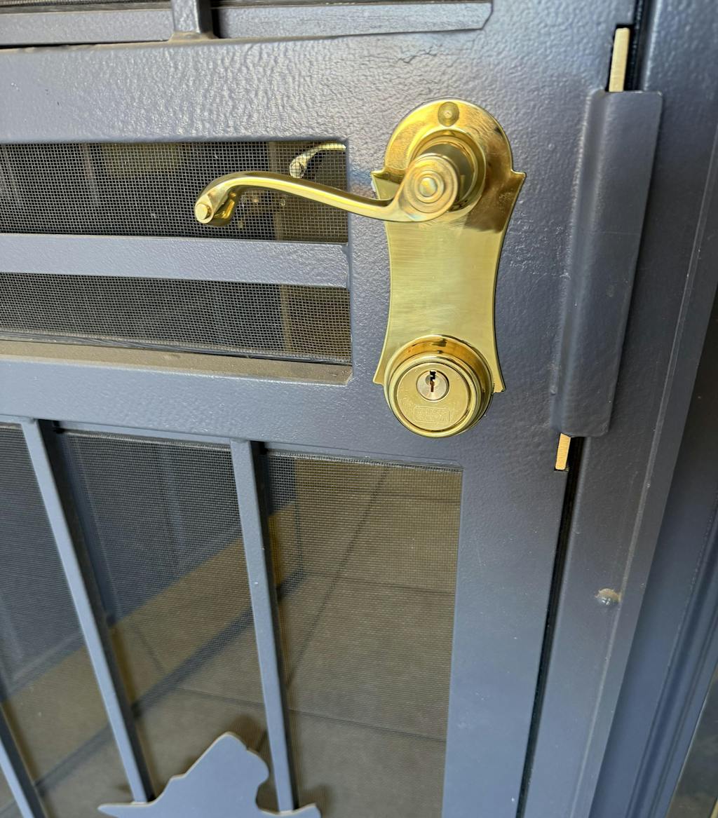 Featuring double cylinders AR1 keyway and heavy-duty brass lever/plate trim, the unit delivers keyed control on both exterior and interior sides—ideal for secure gates, storm-door installations or decorative access points.
